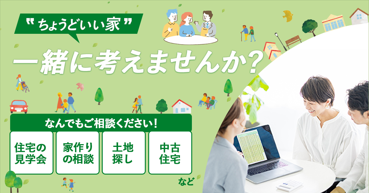 平屋の見学会や相談はこちらから。家づくりのことをイチから丁寧にお伝えします。土地探しやお金のことも含めてどんなことでもご相談ください。