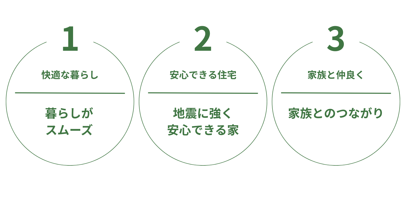 揺れによる被害が少なく、老後まで安心して住み続けられます。災害時の避難もスムーズで、安全性の高い住まいです。