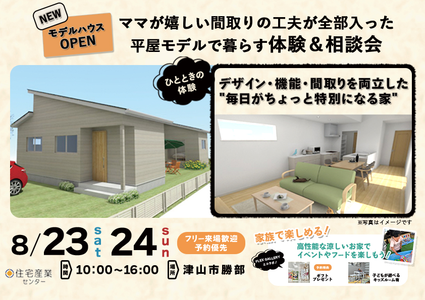 新モデル|ママが嬉しい間取りの工夫が全部入った平屋モデルで暮らす体験&相談会