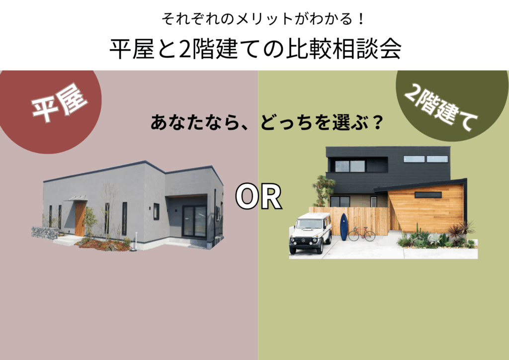 平屋と2階建てどっちを選ぶ?住みやすさやトータルコストを長期的な視点でご相談!