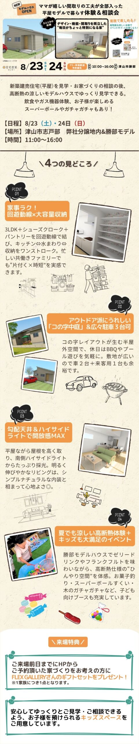 新モデル|ママが嬉しい間取りの工夫が全部入った平屋モデルで暮らす体験&相談会