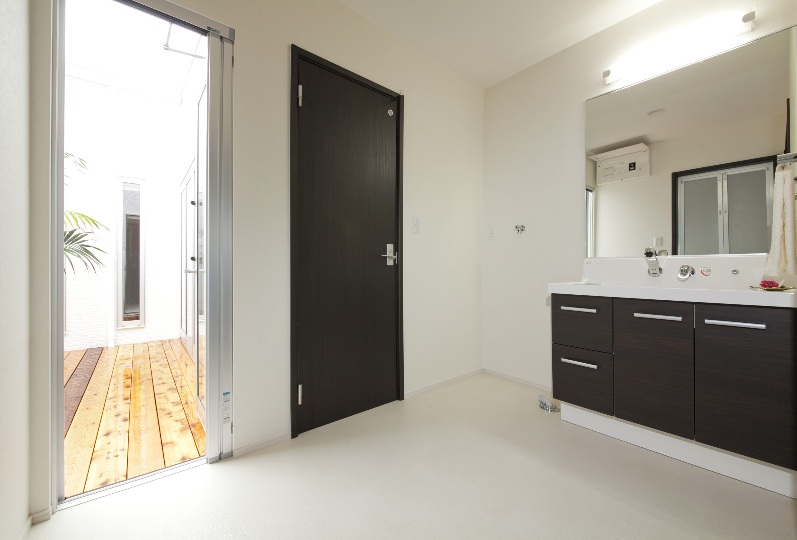 外からの視線を遮りプライベートを守りつつも、室内が明るくなるよう、光庭に大きい窓を設置。